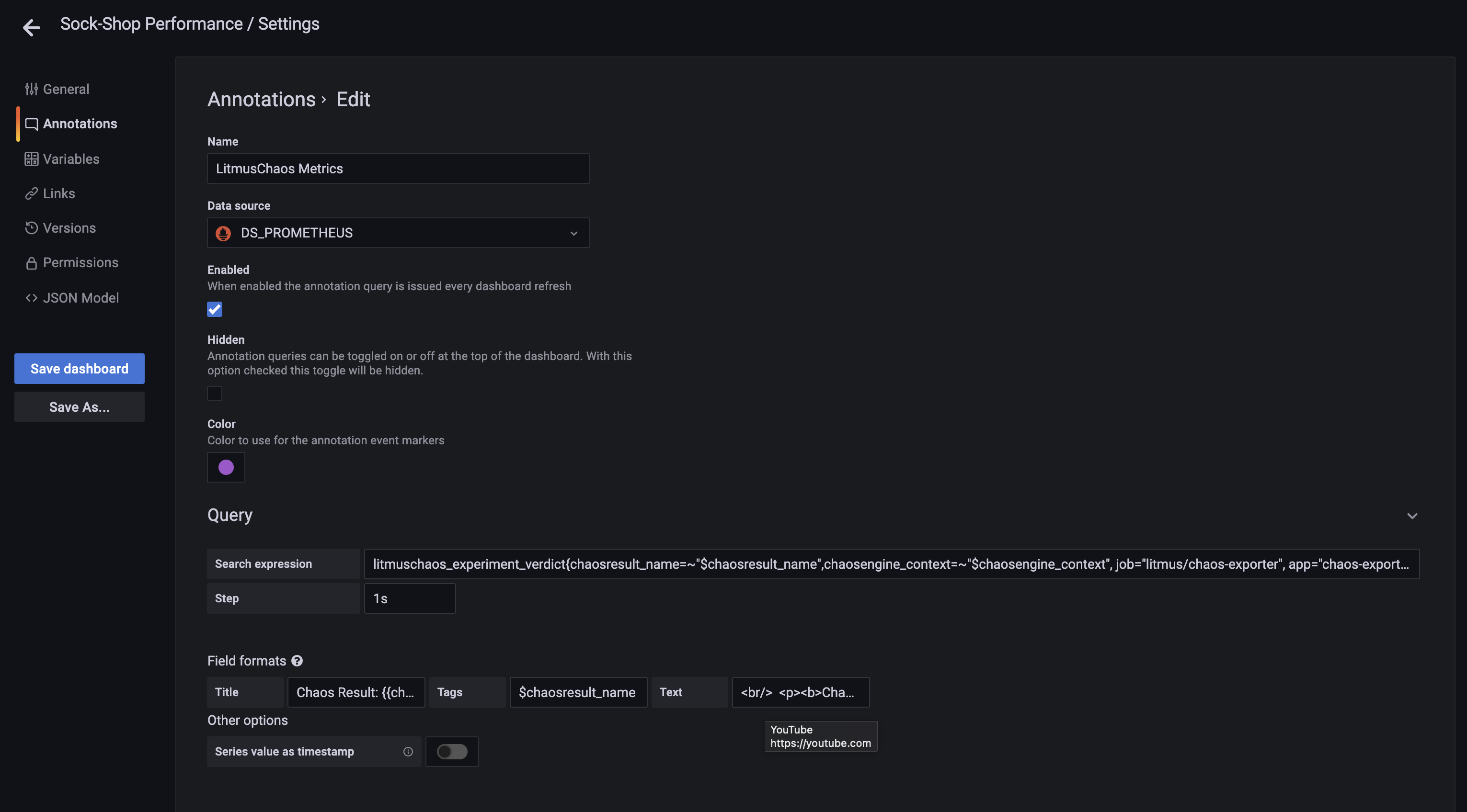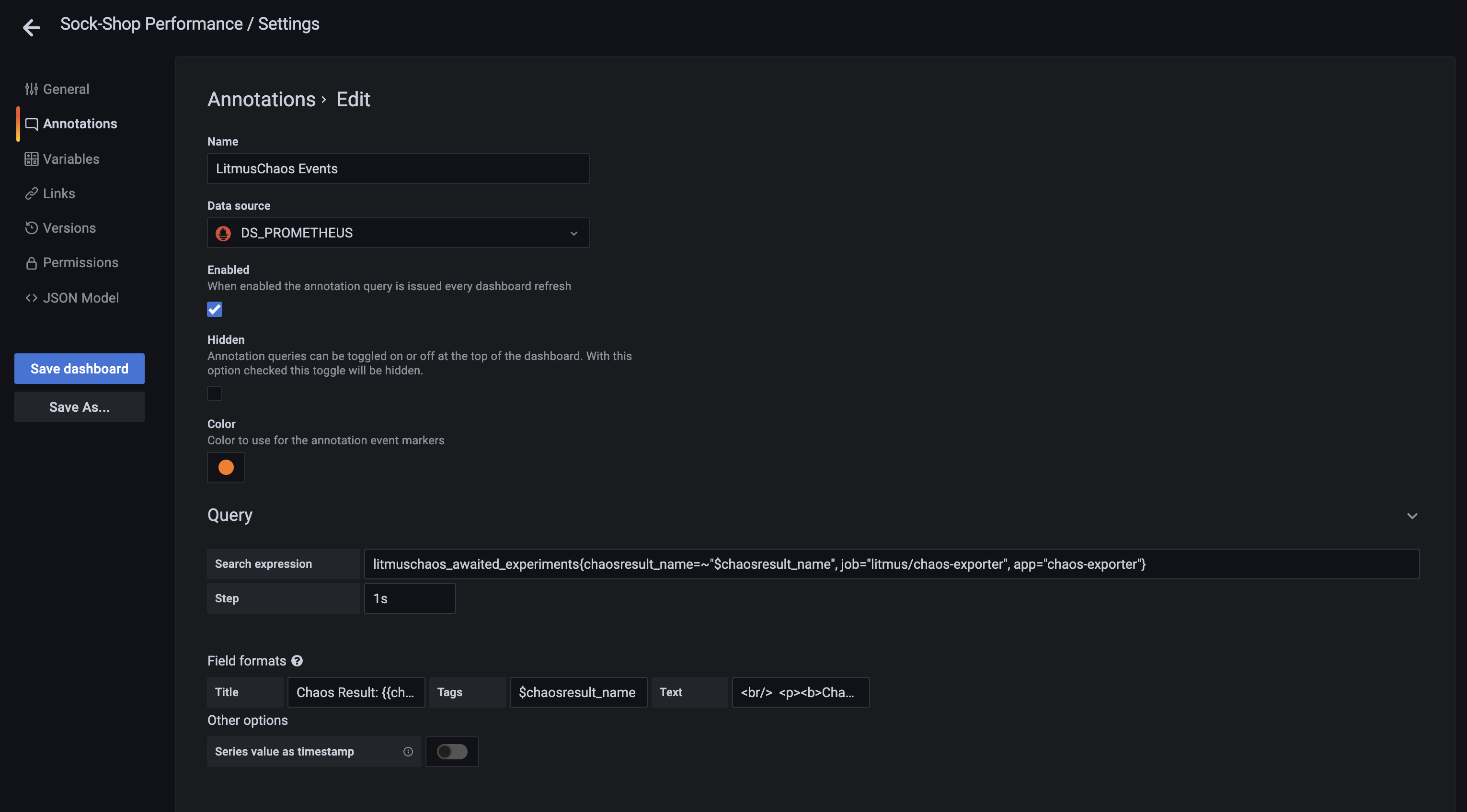 Chaos Engineering is the discipline of experimenting on a system to build confidence in the system’s capability to withstand turbulent conditions in production. Monitoring a system's resilience and its performance under chaos are one of the fundamental principles of chaos engineering. Litmus has sample chaos interleaved dashboards available on Grafana’s community dashboards as well as provisioned dashboards along with provisioned data sources. Some sample chaos interleaved dashboards can be found here